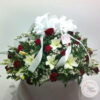 Canasta de Frutas Surtidas acompañado de arreglo floral Tropical. Presentación en canasta de fique.