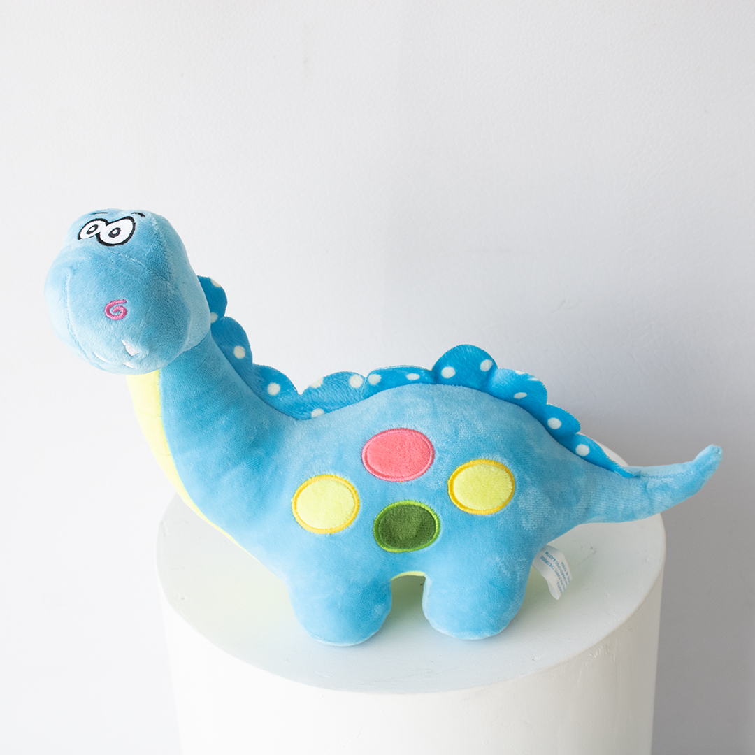 Llegan pisando fuerte estos dinos de peluche de aspecto simpático y alegres colores. Diseño de 4 patas cortitas y cuello largo una de las especies menos agresiva.