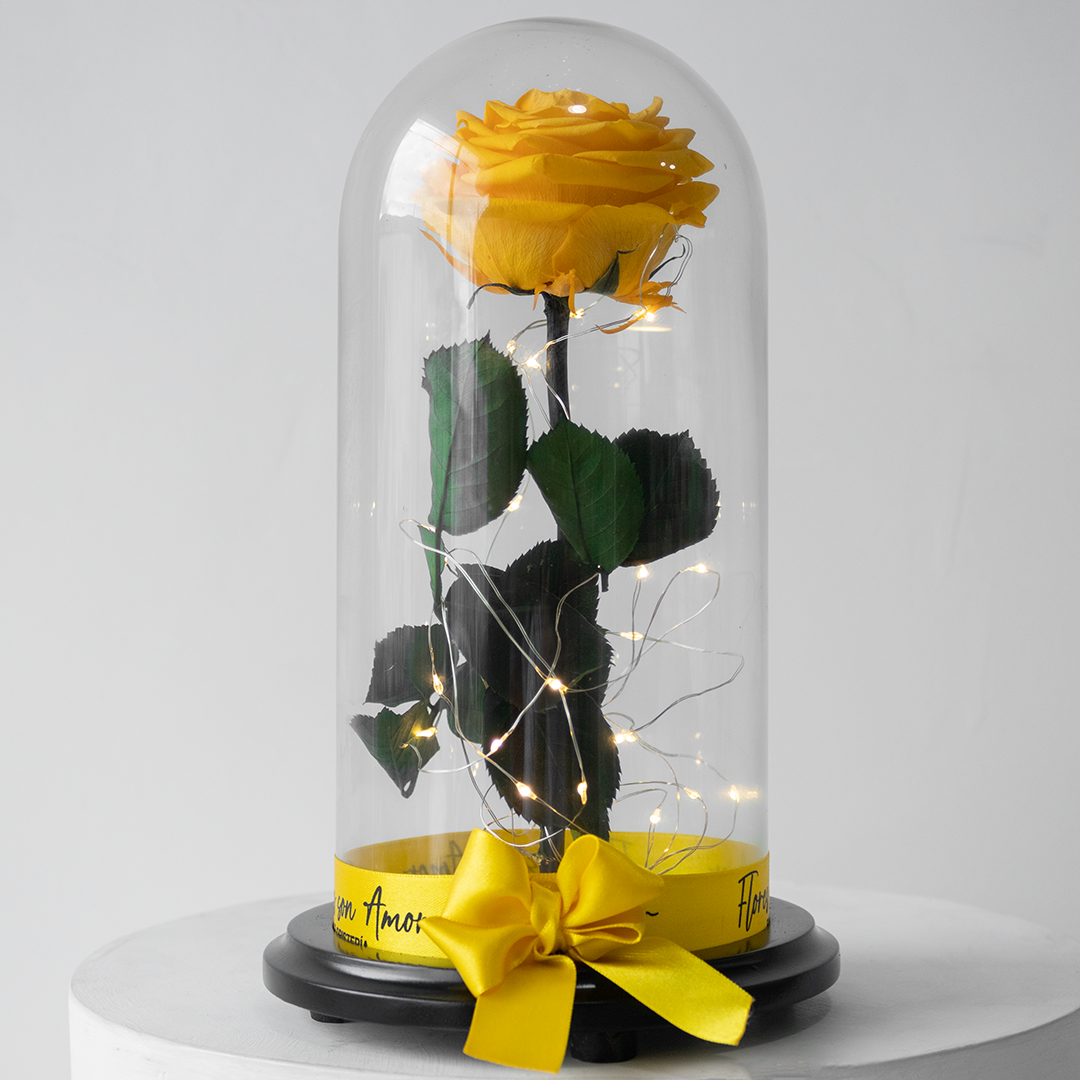 Nuestra rosa natural preservada Ha sido sometida a un proceso especial que le permite conservar la apariencia de una rosa recién cortada, con una duración de aproximadamente 2 años o más. Es un detalle que perdurará en el tiempo. Acompañada de Luces Led en su interior le da un toque único.